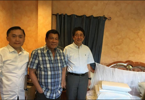 | President Rodrigo Duterte shows Japanese Prime Minister Shinzo Abe his bed in Davao City / photo from SAP Bong Go |